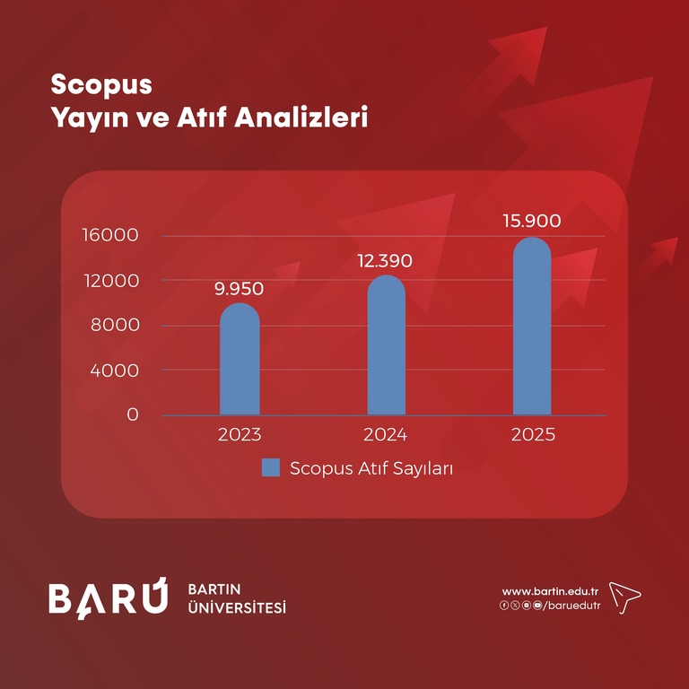 Scopus kapsamındaki atıf sayılarında önemli bir artış sergilendi. Toplam atıf sayısı 2023’te 9.950 iken 2024’te 12.390’a, 2025’te 15.900’e ulaştı. Scopus atıflarında 3 yıllık dönemde 5.950’lik bir artış kaydedildi. Böylece BARÜ, uluslararası indekslerdeki görünürlüğünü ve bilimsel etki düzeyini her geçen yıl arttığını ortaya koyarken araştırma ve yayın performansındaki sürdürülebilir gelişimini de bir kez daha kanıtladı.