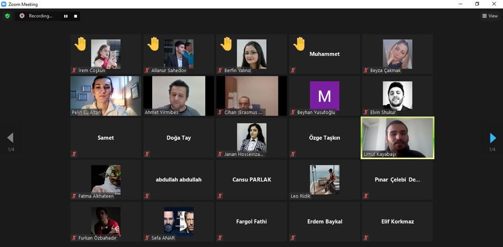 Üniversitemiz Kariyer Merkezi tarafından düzenlenen ‘Erasmus ile Kariyerine Yön Ver’ adlı etkinlik öğrencilerin yoğun katılımıyla gerçekleştirildi. Kariyer Merkezi’nden Öğr. Gör. Pelin Su Altan’ın moderatörlüğünde düzenlenen çevrimiçi etkinlikte Erasmus Koordinatörü Öğr. Gör. Ahmet Yirmibeş tarafından yurt dışı öğrenim hareketliliği ve yurt dışında staj yapabilme konularında bilgiler verildi.